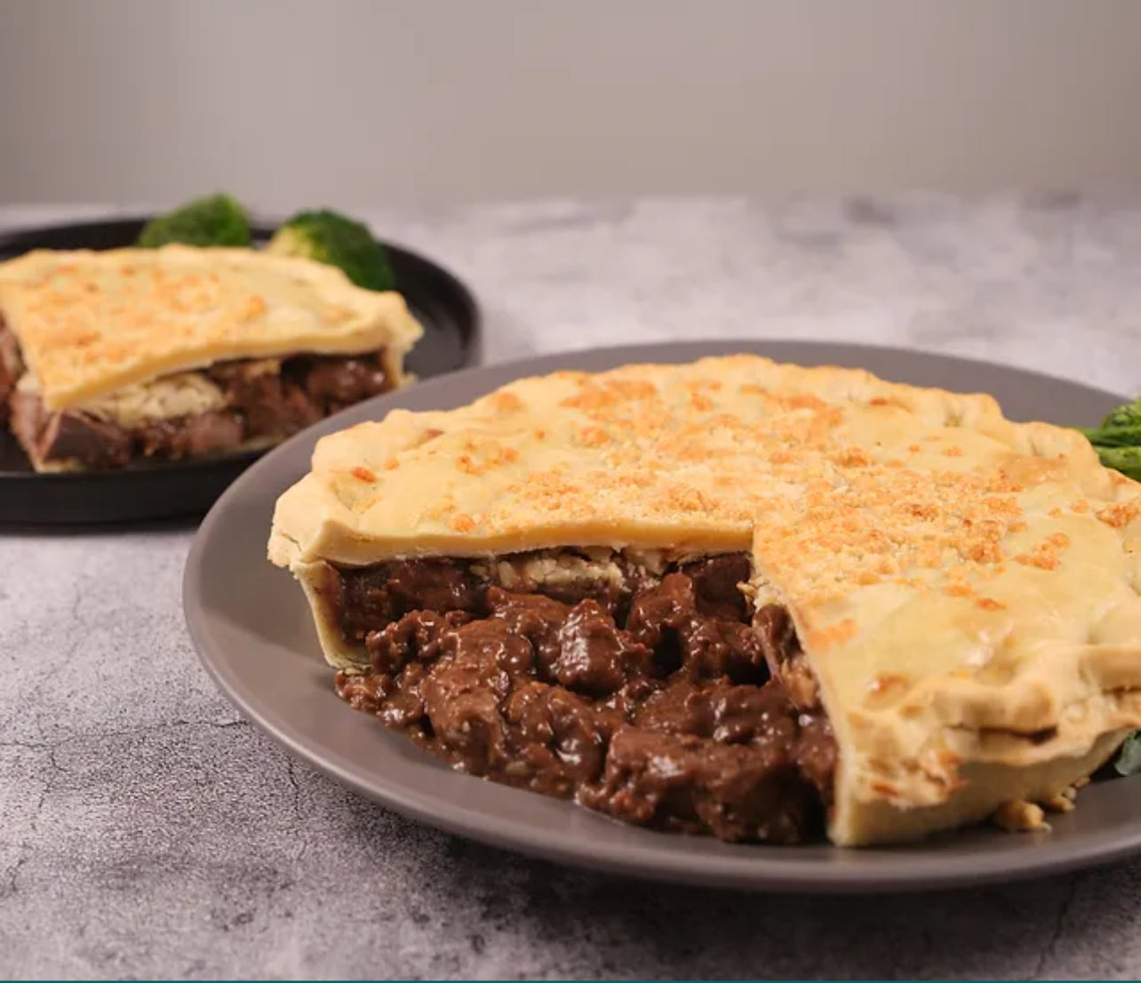 Satisfy your craving with the Medium Kentish Mayde Steak and Stilton! Tender chunks of steak are cooked to perfection in a rich gravy, then topped with creamy stilton cheese. Encased in a traditional shortcrust pastry glazed with even more stilton, this dish is a flavourful sensation that will leave your taste buds wanting more!