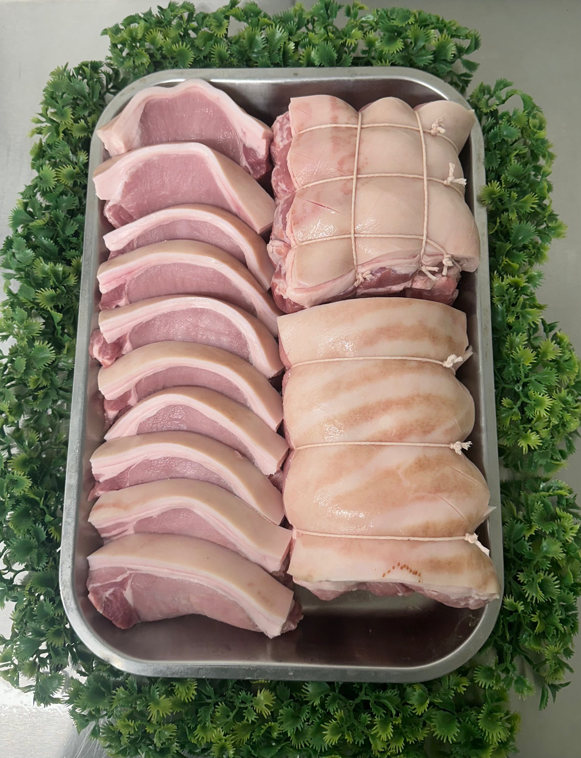 Experience the rich, savory flavors of The Valley Pork Box! Get 1 pork shoulder joint, 1 pork loin joint, and 10 pork steaks of high quality, free range pork for just £30. Enjoy delicious, tender cuts and elevate your meals with this affordable bundle.